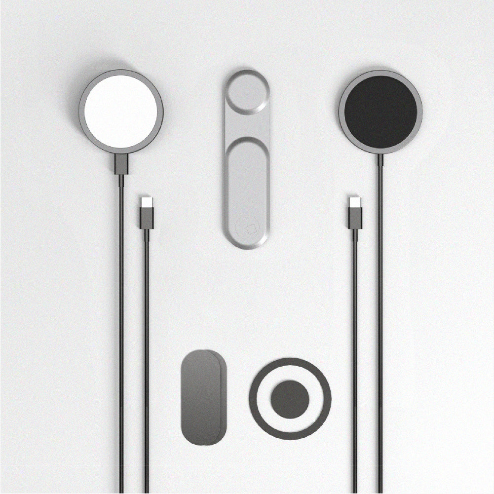 Mount is the basic component of the ecosystem, where you can attach your phone, your Wireless Charger, or your  Light. Thanks to its magnetic system, your phone can become an essential tool to improve the management of your tasks. Always have charted in sight, work on mobile interfaces in real-time, live-stream your gameplay and share your presentation while still seeing other hosts during online meetings. When not in use, the  Mount is as thin as 4 credit cards.