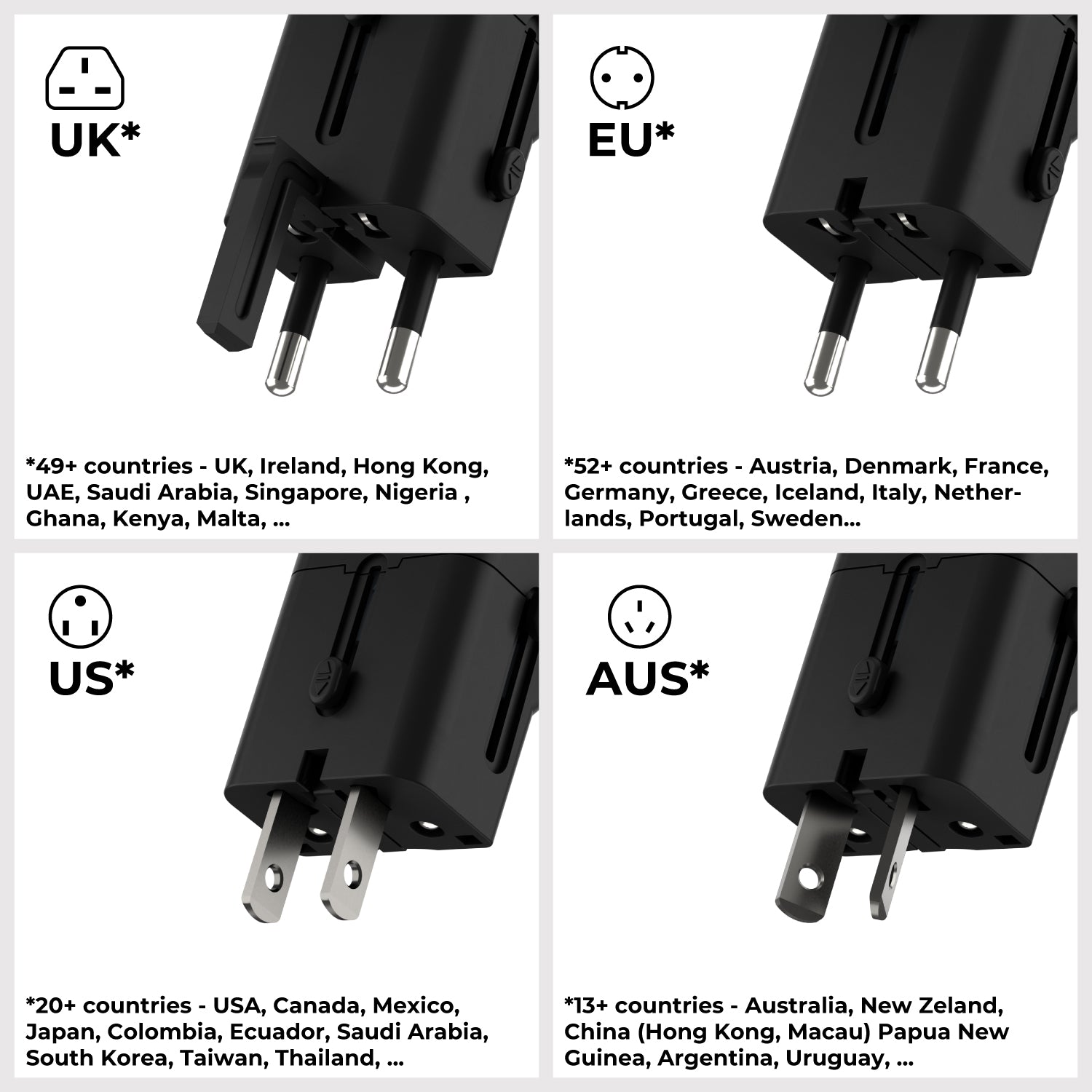 Pocket Travel Charger – US/EU/UK/AU plugs